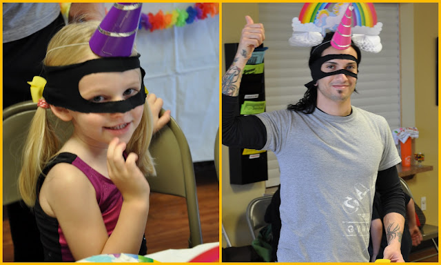 So, what do you get when you combine ninjas and unicorns? Johnny said he loved the themes as soon as we began decorating. This pic definitely shows that love. :)